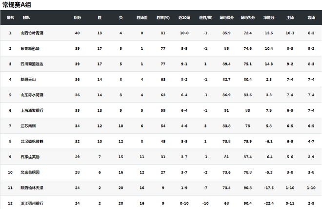 至于B组前4名球队均至少12胜,B组第一的合肥女篮18胜2负,而B组后两名的福建女篮仅3胜17负,江西女篮低至1胜19负。
