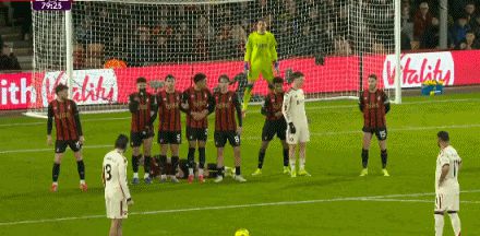 索博本赛季英超打进4记任意球,创队史纪录且距联赛纪录仅1球
